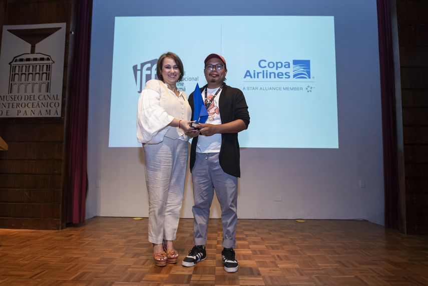 La Vicepresidente de Servicio Abordo de Copa Airlines, María Alejandra Jaén, fue la encargada de dar el reconocimiento más esperado, el Premio del Público Copa Airlines a la película documental “Bila Burba” del director panameño Duiren Wagua.