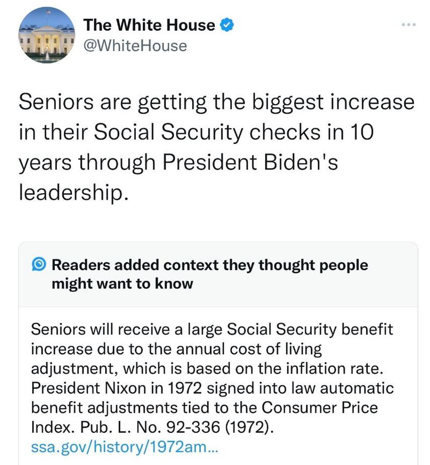 Pero la red social agregó una mención al mensaje, especificando que las pensiones están indexadas con la tasa de inflación, según una ley de 1972 ratificada por Richard Nixon (un presidente republicano).