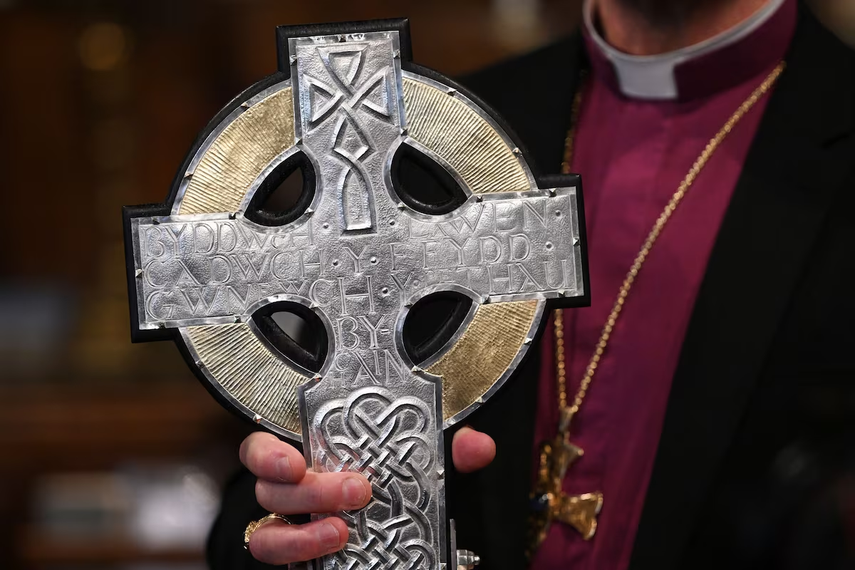El arzobispo de Gales, Andrew John, bendijo la nueva Cruz de Gales ante dignatarios y feligreses en un servicio religioso celebrado en Llandudno, en el norte de esa nación británica. La cruz será trasladada a Londres para encabezar la procesión de la coronación.