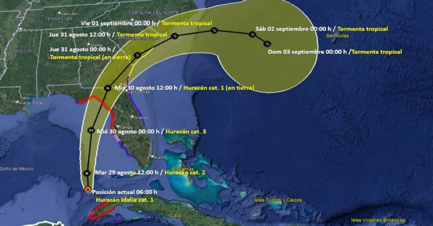 En el momento del aviso, Idalia se encontraba a unos 600 kilómetros al sur-suroeste de Tampa, Florida, y presentaba vientos máximos sostenidos de 120 kilómetros por hora.