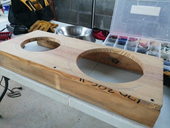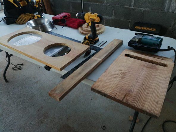 - Luego cortamos dos reglas de 1"*2"*24", las que servirán de soporte a la tabla con los orificios para las vasijas.