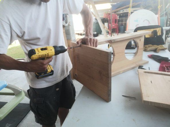 - Taladrar los orificios de las tablas con una broca del diámetro de los tornillos para evitar rajaduras de las mismas y para esconder la cabeza de los tornillos, taladrar medio milímetro del diámetro de la cabeza del tornillo, así no quedará sobresalido y a futuro podremos esconderlo con relleno o pasta para madera.