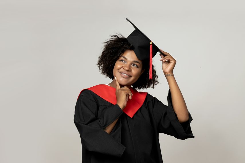 Asegúrate de colocar el birrete ligeramente inclinado hacia atrás para evitar aplastar tus rizos y mantener el peinado intacto. Añade un poco de fijador o spray ligero para garantizar que el estilo se mantenga perfecto durante toda la ceremonia.