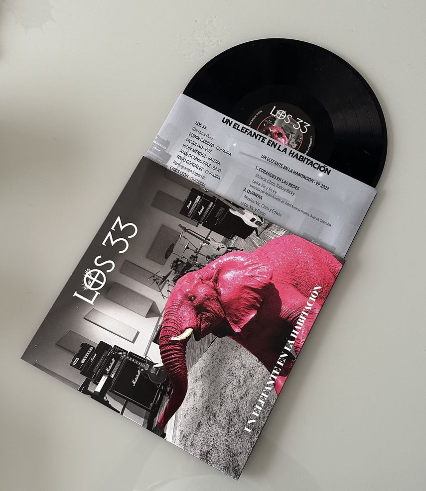 El vinilo contiene de un lado, la portada y temas del disco “Llévate Lo Que Quieras” y, del otro lado la portada con sus temas nuevos de “Un Elefante en la Habitación”, que cuenta con la participación en estudio con Chris León, guitarrista original de la banda, quien grabó y, además compuso temas con Los 33 para este nuevo disco.