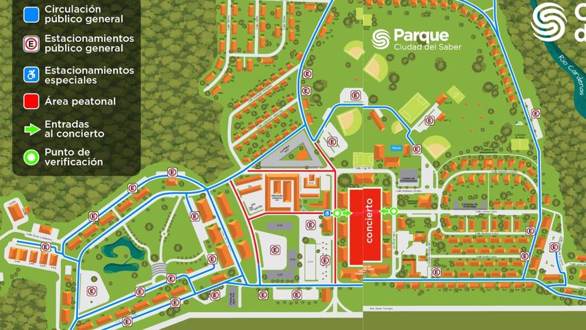 Igualmente, dentro de Ciudad del Saber hay diferentes zonas y rutas de acceso para el Cuadrángulo Central, donde será el concierto desde las 3pm.