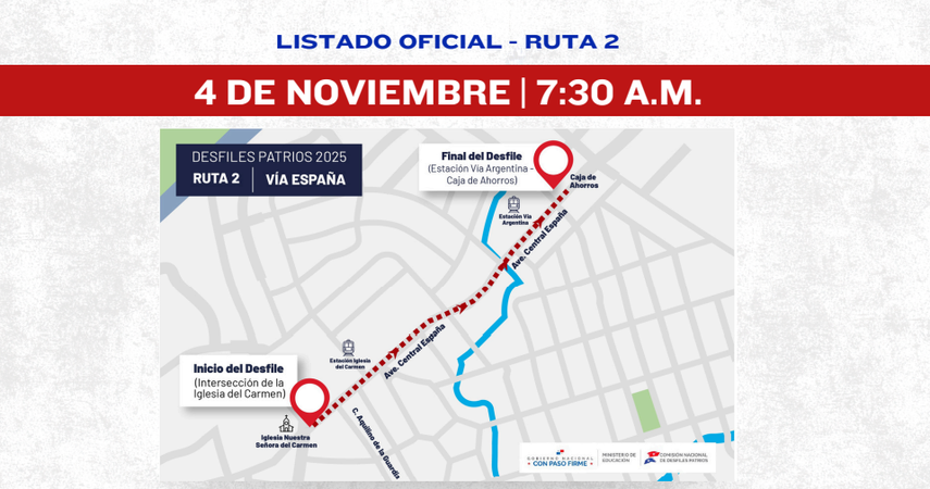 El desfile iniciará a las 8:30 a.m. desde la intersección de la Iglesia del Carmen, recorrerá la Vía España y finalizará en la estación del Metro de Vía Argentina, cerca de la casa matriz de la Caja de Ahorros.