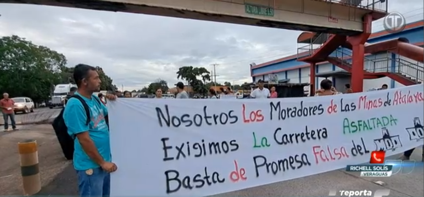 Moradores de Las Minas de Atalaya, provincia de Veraguas, cerraron la Vía Interamericana para exigir el servicio de agua potable y mejoras en las carreteras asfaltadas; los residentes exigen respuesta por parte del Ministerio de Obras Públicas (MOP) y por el Instituto de Acueductos y Alcantarillados Nacionales (IDAAN).