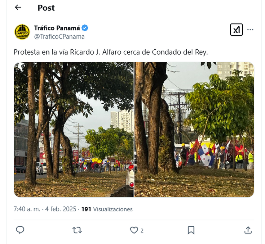 El Sindicato Único de Trabajadores de la Construcción y Similares (SUNTRACS) mantiene un cierre en la Avenida Ricardo J. Alfaro, a la altura de Condado del Rey, como parte de una protesta contra presuntas concesiones del Gobierno panameño a Estados Unidos en relación con el Canal de Panamá.