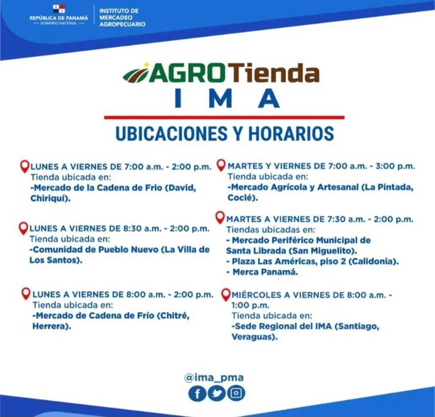 Horarios y ubicaciones de las AgroTiendas del IMA