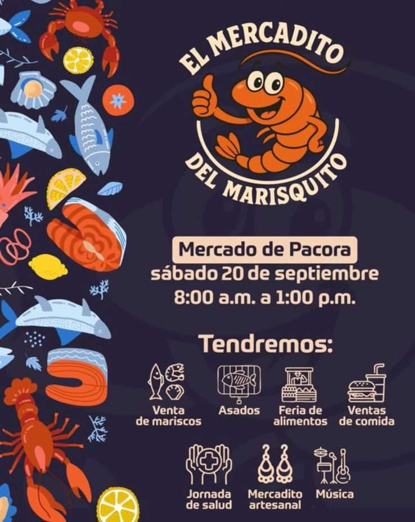 La Alcaldía de Panamá invita a la comunidad al evento ‘El Mercadito Marisquito’, que se realizará este sábado 20 de septiembre en el Mercado de Pacora, de 8:00 a.m. a 1:00 p.m.