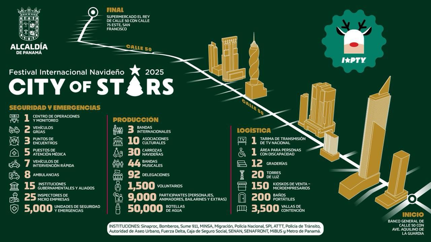 La Alcaldía de Panamá anunció que más de una docena de instituciones apoyarán el operativo de seguridad que se desplegará para garantizar el desarrollo del desfile navideño que iluminará Calle 50 la tarde del domingo 14 de diciembre.