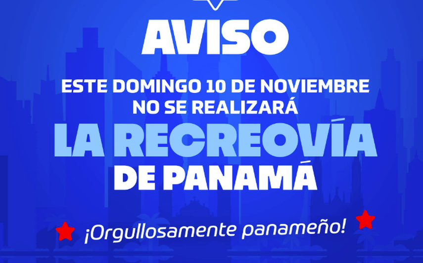 La Alcaldía de Panamá, a través de su Subdirección de Deportes, ha anunciado la suspensión de la Recreovía en la Cinta Costera el próximo domingo 10 de noviembre debido a las celebraciones de Fiestas Patrias.