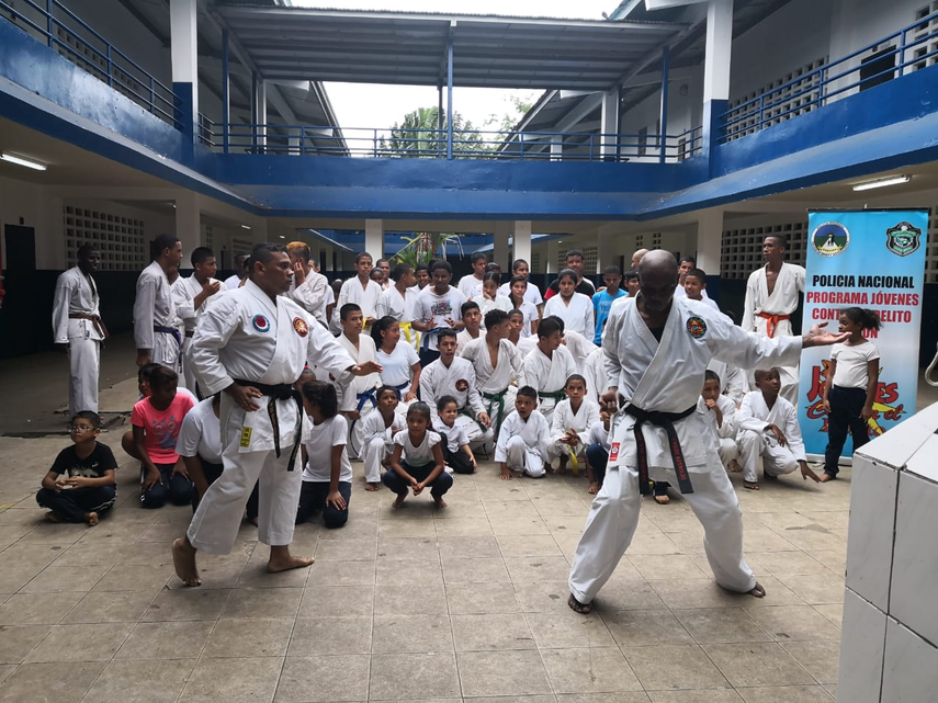 Las autoridades de la Policía Nacional (PN), mediante el Programa de Jóvenes Contra El Delito, capacitan a más de 90 estudiantes en la disciplina Karate Do al estilo Shokotan, como parte de la Escuela de Shotokan Kai Budo Colón. El Programa Jóvenes Contra el Delito lleva activo desde el año 2012 y ha atendido a cientos de jóvenes y niños deseos de aprender una disciplina.