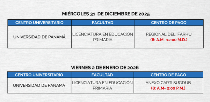 El desembolso beneficia a 550 estudiantes de la Universidad de Panamá (UP) y de la Universidad Especializada de las Américas (UDELAS), como parte del proceso de cumplimiento de pagos atrasados anunciado por la entidad.