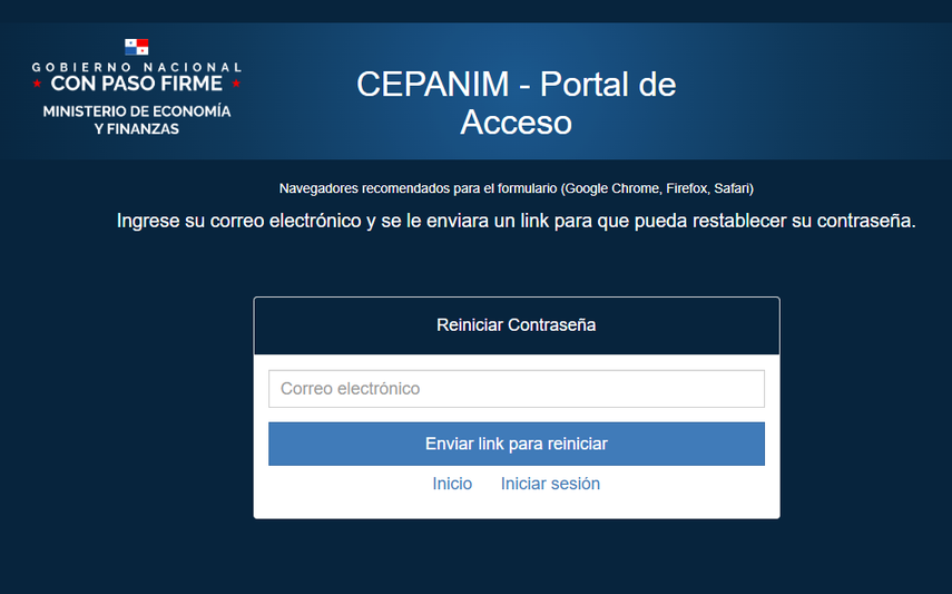 El Ministerio de Economía y Finanzas de Panamá (MEF) explicó el procedimiento que deben seguir los beneficiarios del CEPANIM en caso de olvidar la contraseña de acceso al portal de registro.
