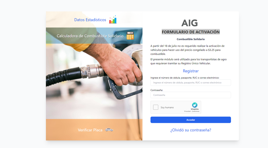 A todos los conductores que deseen recibir el subsidio al combustible, para acceder al precio fijado por el Gobierno a $3.25 es importante conocer que no es necesario registrarse en ningún portal sin embargo; el Estado ha establecido un formulario para activar el subsidio económico a través del portal web.