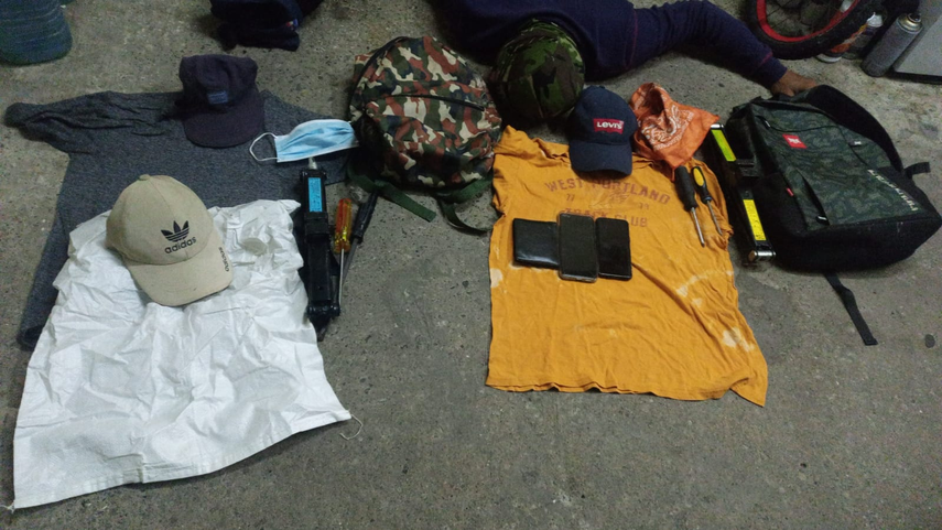 Los sujetos fueron sorprendidos en el acto, portando maletines que contenían diversas herramientas como destornilladores, dos gatos hidráulicos, gorras, mascarillas y tres teléfonos celulares, entre otros enseres.