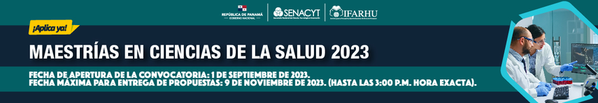 La Secretaría Nacional de Ciencias, Tecnología e Innovación (Senacyt ) y el Instituto para la Formación y Aprovechamiento de Recursos Humanos (IFARHU), anuncian la convocatoria pública de becas para maestrías en ciencias de la salud 2023, vigentes hasta el 9 de noviembre, a las 3:00 p.m. hora exacta.