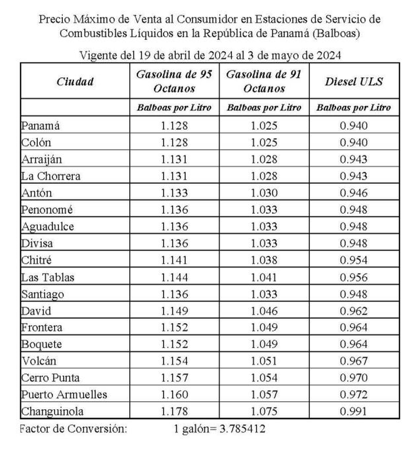 A partir del viernes 19 de abril, entrarán en vigencia los nuevos precios del combustible, con un aumento en la gasolina de 95 y 91 octanos, así como en el diésel.