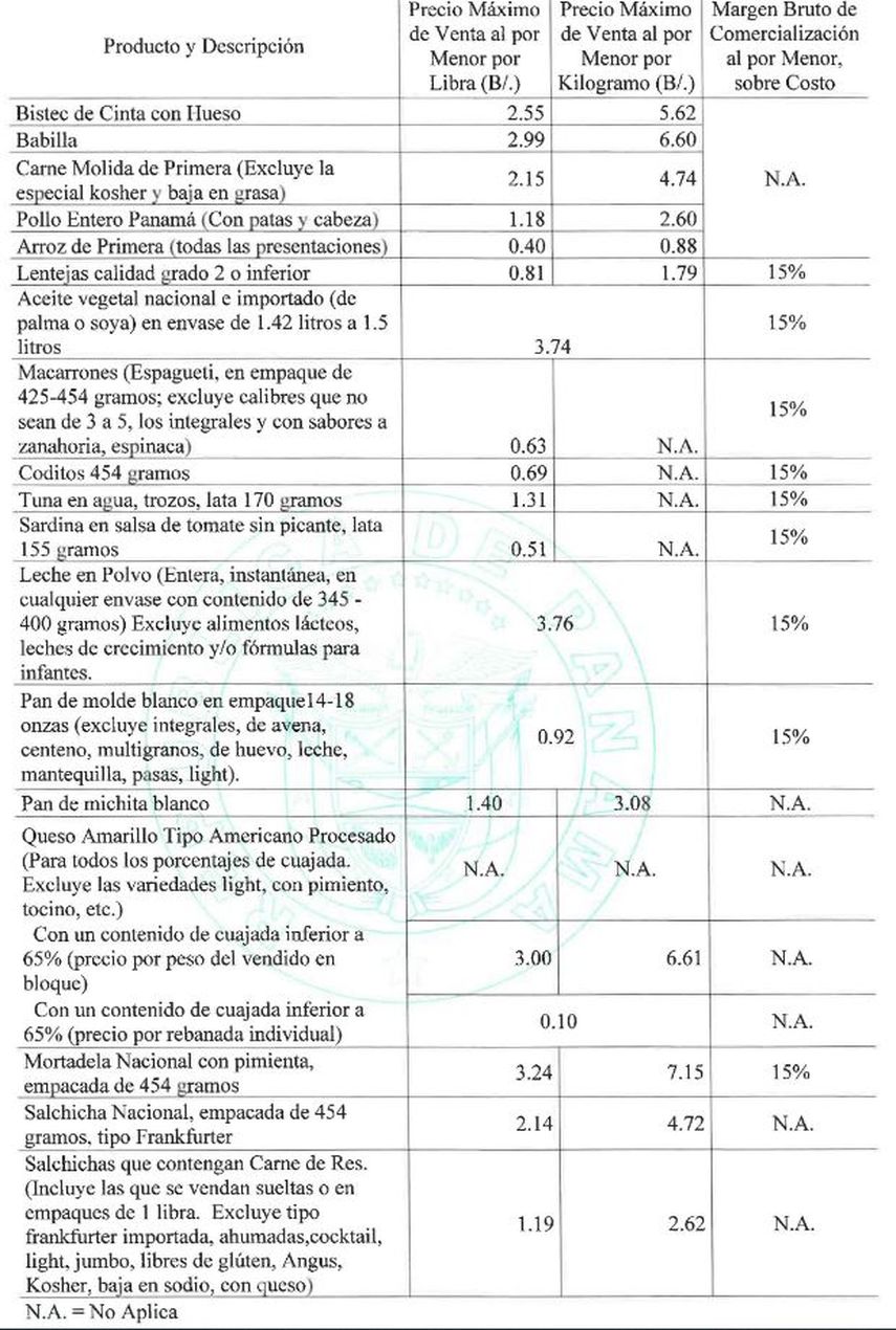 A continuación el detalle con los precios máximos de venta de los productos de Canasta Básica bajo Control de Precios.