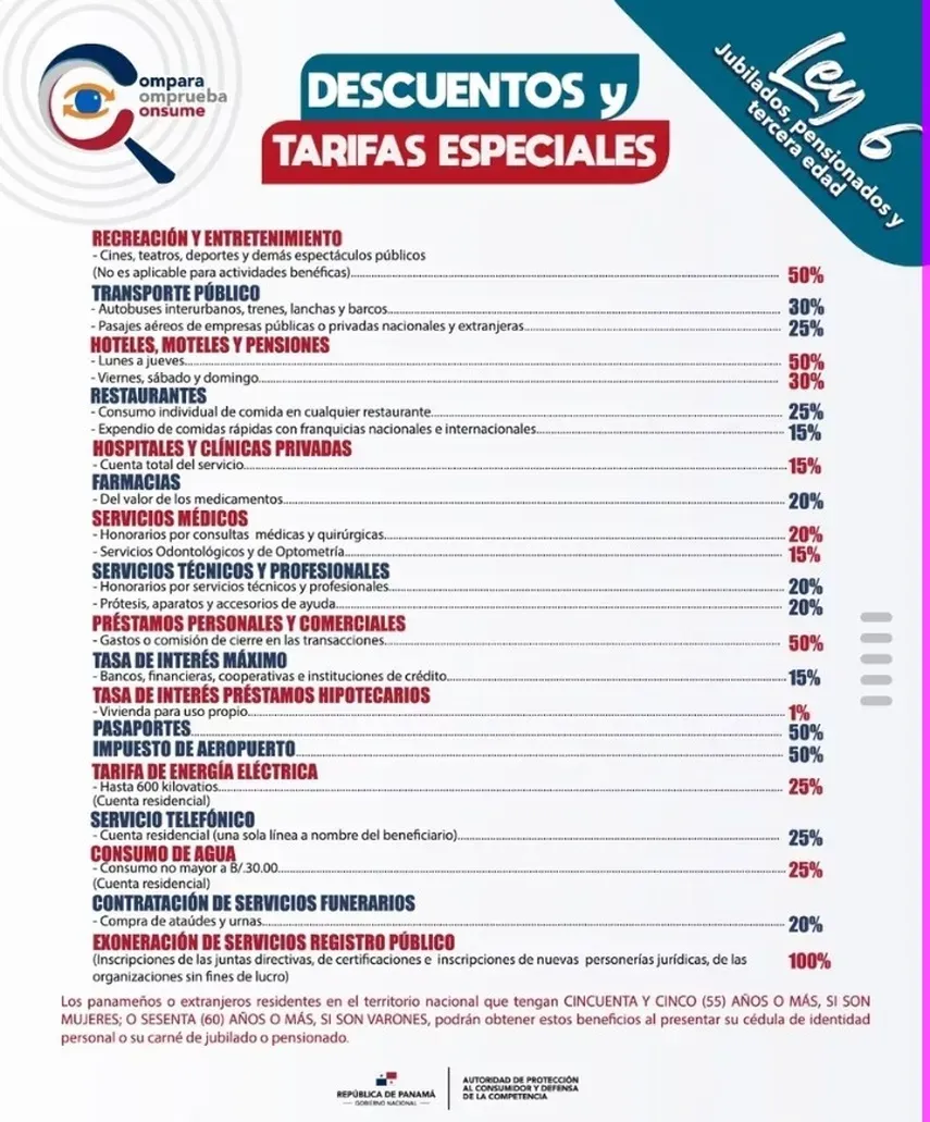 Descuentos de la Ley 6 para jubilados y pensionados en Panamá