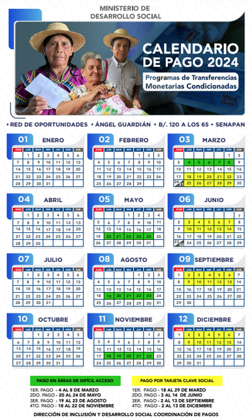 Según el calendario de pago del Ministerio de Desarrollo Social (MIDES), del lunes 2 al viernes 13 de diciembre, los beneficiarios de los programas Red de Oportunidades, 120 a los 65, Ángel Guardián y SENAPAN que cobran por ACH podrán retirar su dinero en efectivo a través de los cajeros automáticos.