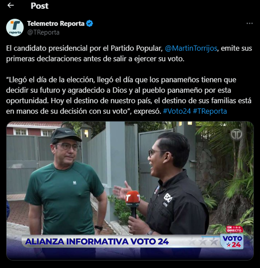 “Hoy es el día de Panamá, hoy es el día en pensar de que nosotros vamos a gobernar sin los corruptos de antes ni los corruptos de ahora, este es el día donde nosotros cambiamos este país, que nada te confunda”, @MartinTorrijos, candidato presidencial del Partido Popular.… pic.twitter.com/mu5zu9tQRp