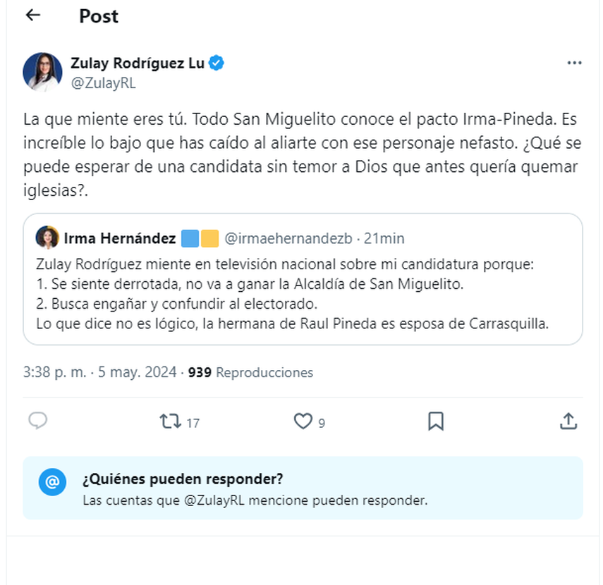 Primeras declaraciones de la candidata Maribel Gordón este 5 de mayo