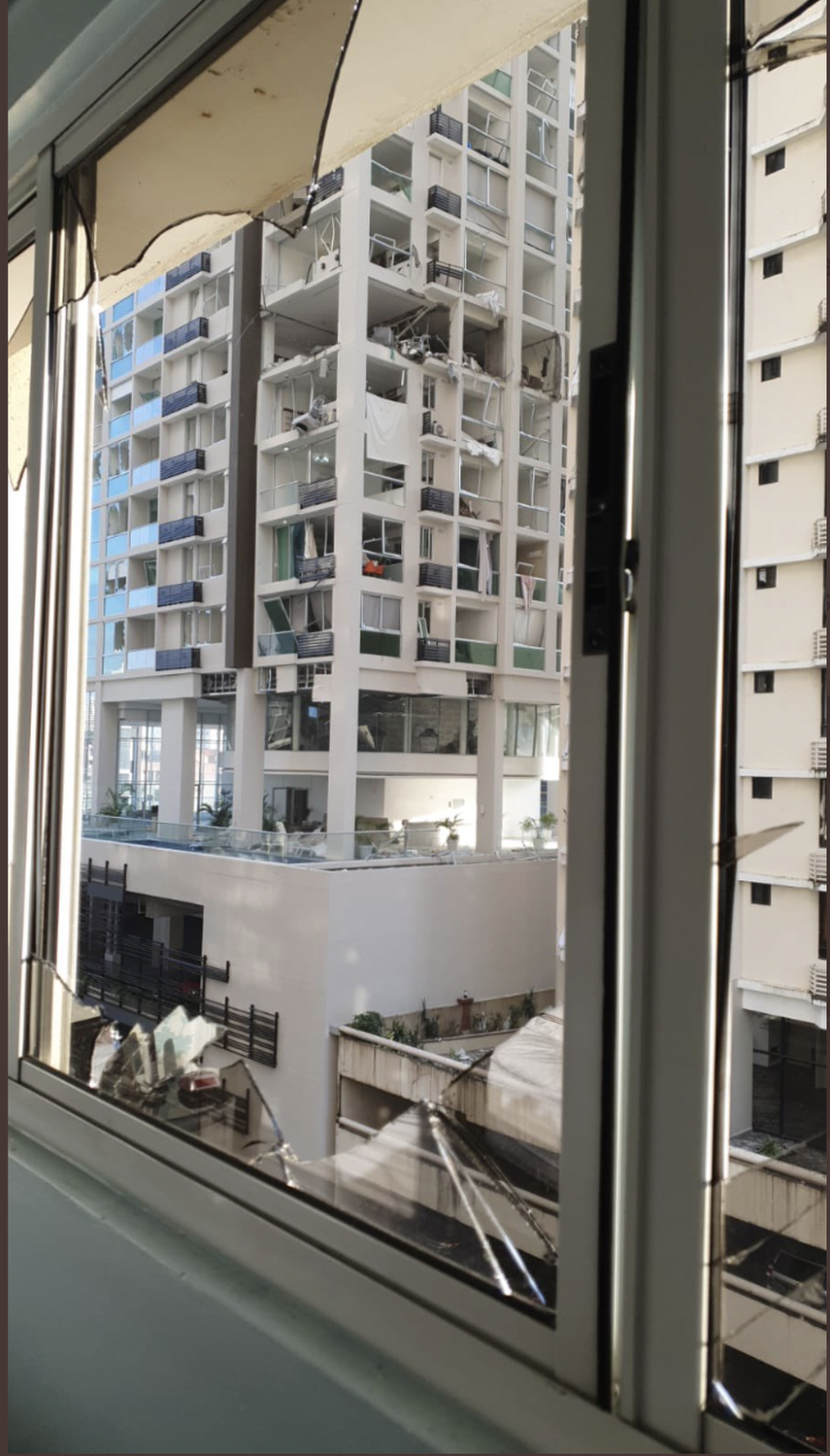 Los restos de la explosión llegaron hasta las calles y la piscina del edificio. Algunos testigos reportan que sintieron la onda expansiva de la explosión en varios edificios y zonas aledañas.