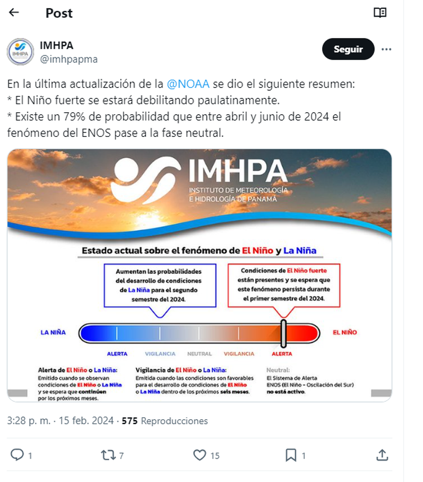 IMHPA destaca un aumento en la probabilidad de que se desarrollen condiciones de La Niña en el segundo semestre de 2024, con una probabilidad superior al 70%. Este fenómeno, contrario a El Niño, podría tener impactos climáticos distintos, como lluvias más intensas y cambios en los patrones de temperatura.