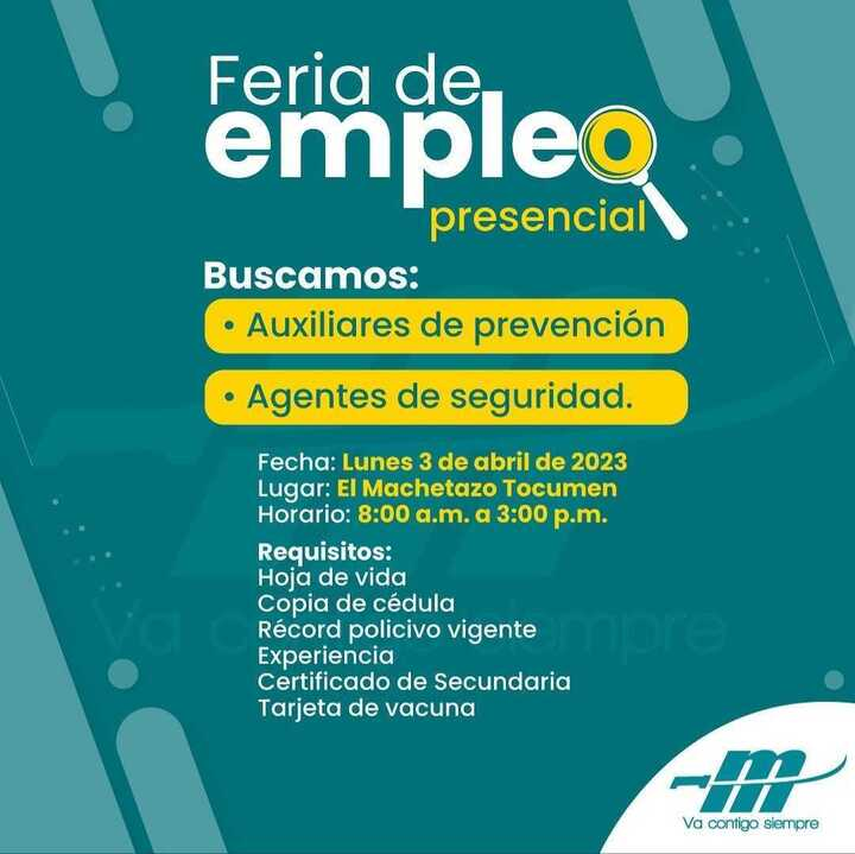 Este lunes 3 de abril el almacén El Machetazo tendrá una feria de empleo presencial en la sucursal de Tocumen de 8:00 a.m. a 3:00 p.m. para la búsqueda de personal a ocupar sus vacantes disponibles.