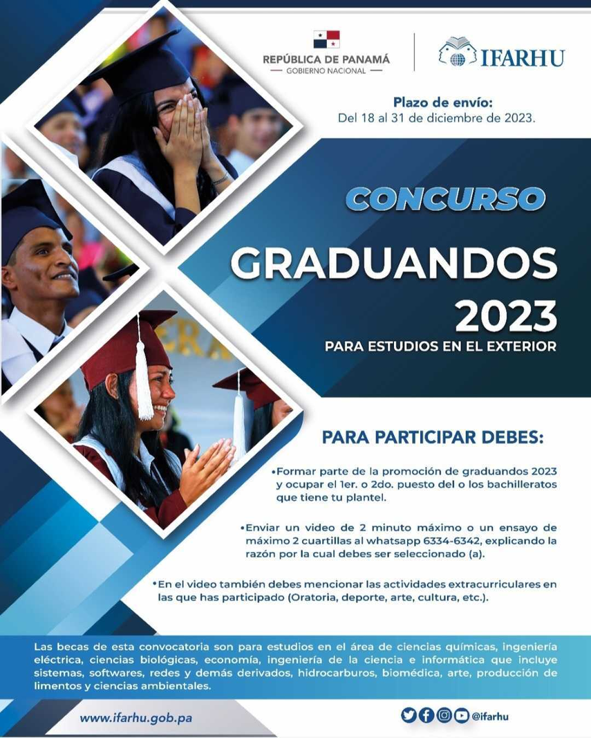 El Instituto para la Formación y Aprovechamiento de los Recursos Humanos (IFARHU) mantiene vigente la convocatoria del Concurso de becas 2023 de estudios internacionales para estudiantes graduandos.