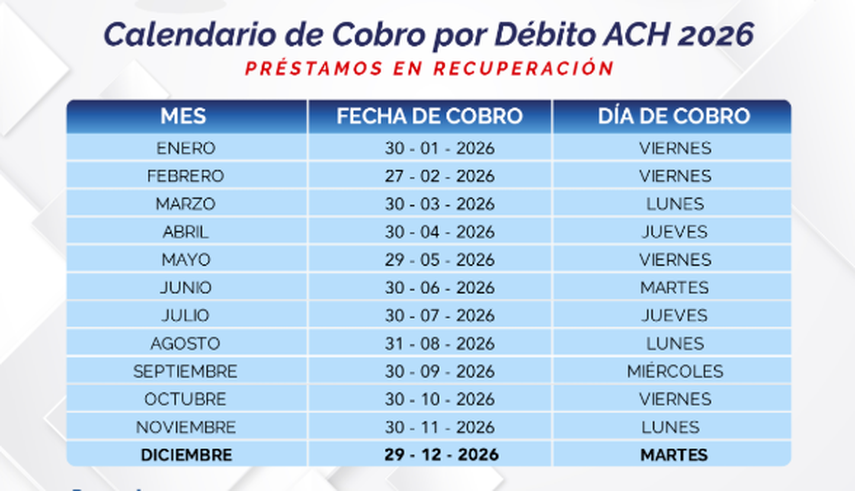 El Instituto para la Formación y Aprovechamiento de Recursos Humanos (IFARHU) publicó los calendarios de cobro 2026 de créditos educativos, una herramienta dirigida a los beneficiarios que mantienen financiamientos estudiantiles otorgados por la entidad.
