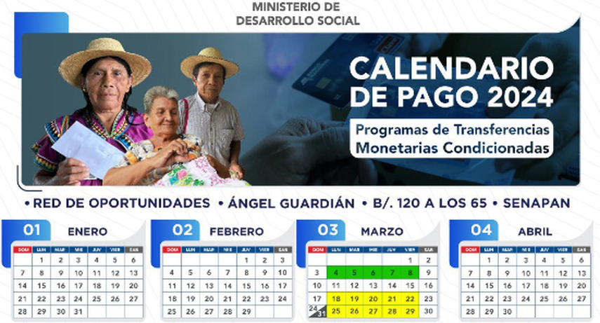 El Ministerio de Desarrollo Social (MIDES) ha publicado el calendario para el segundo pago de los programas sociales 120 a los 65, Ángel Guardián, Red de Oportunidades y SENAPAN, dirigido a beneficiarios que residen en áreas de difícil acceso a nivel nacional. Este desembolso se llevará a cabo del 20 al 24 de mayo de 2024.