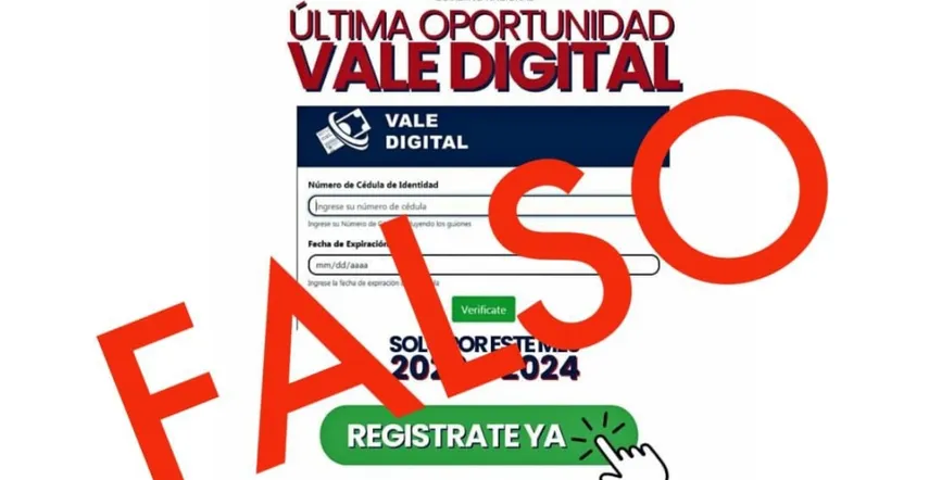 Hace unos días, el MIDES alertó de una página de internet que invitaba a la inscripción del pago programado para este mes del Vale digital, donde le piden al usuario que actualice su información personal (número y fecha de expiración de la cédula de identidad) para luego verificar la transferencia del dinero.