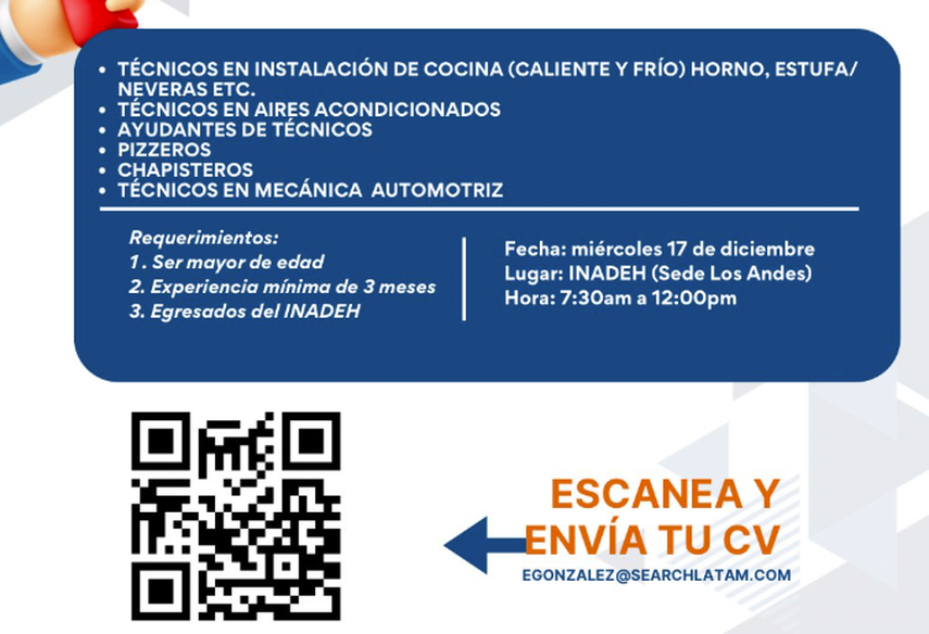 Contenido relacionado: ¡MAÑANA! INADEH anuncia feria de empleo en Los Andes junto a SEARCHin Latam