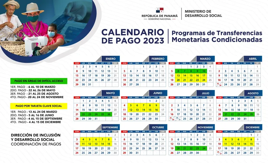 El Ministerio de Desarrollo Social (MIDES) anuncia el calendario de pago de los Programas de Transferencias Monetarias Condicionadas (PTMC): Red de Oportunidades, Ángel Guardián, 120 a los 65 y el SENAPAN, el cuál muestra, que el tercer cobro del 2023 inicia el 21 de agosto.
