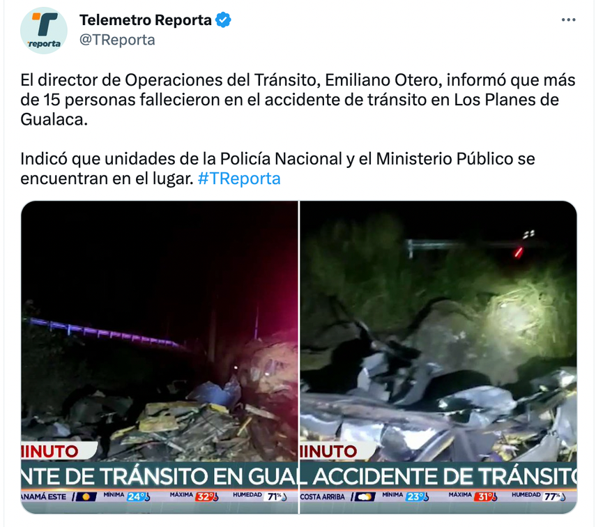 Al menos 33 personas murieron la madrugada de este miércoles 15 de febrero luego de que el bus en el que viajaban cayera en un precipicio en Gualaca, provincia de Chiriquí.