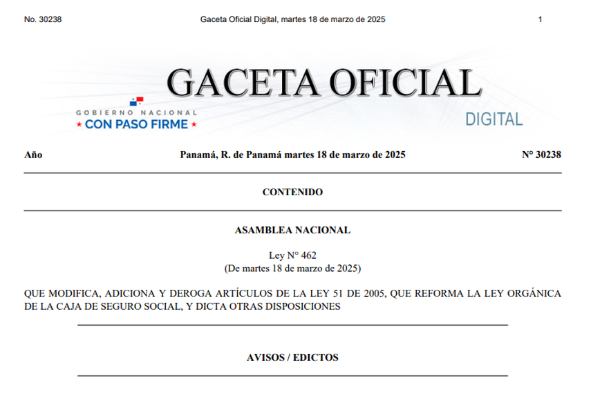 La reciente promulgación de la Ley 462, publicada en la Gaceta Oficial No. 30238, introduce modificaciones clave en el sistema de jubilación y pensiones de la Caja de Seguro Social (CSS).