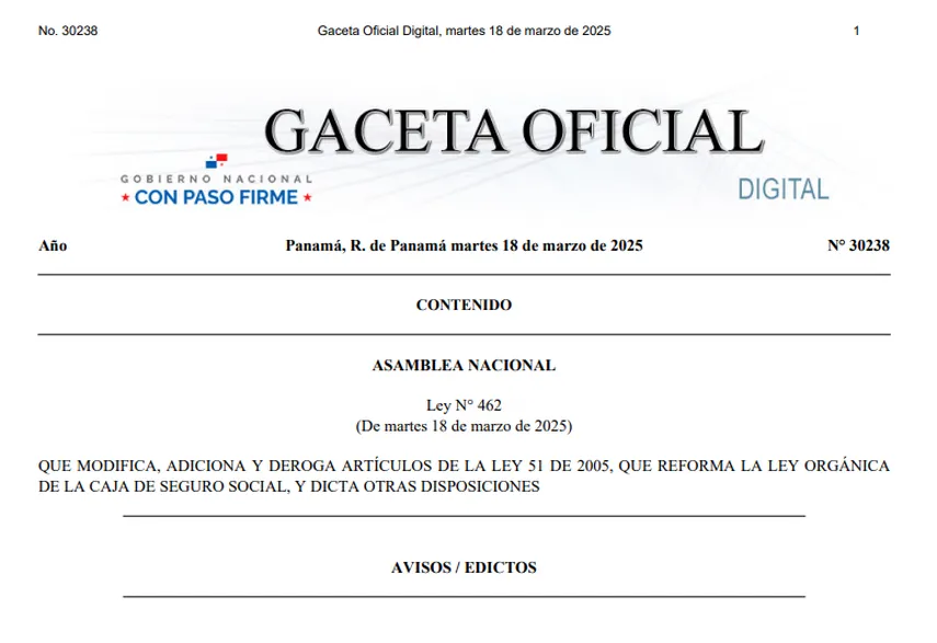 La reciente entrada en vigencia de la Ley 462, publicada en la Gaceta Oficial No. 30238, introduce cambios significativos en el régimen de jubilaciones y pensiones administrado por la Caja de Seguro Social (CSS).