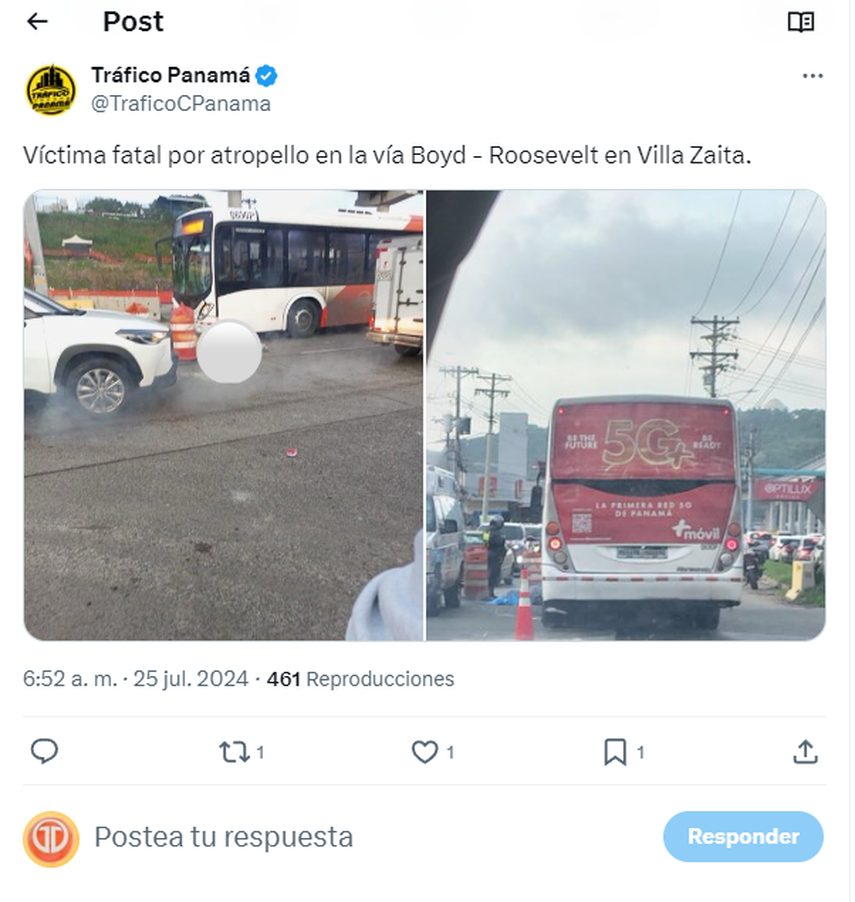 Una mujer perdió la vida la mañana de este jueves en la Vía Boyd Roosevelt, Villa Zaita tras ser atropellada por un Metrobús. La Policía Nacional informó que, hasta la fecha, se han registrado 189 víctimas por accidentes de tránsito en el año, de las cuales 84 son atropellos.