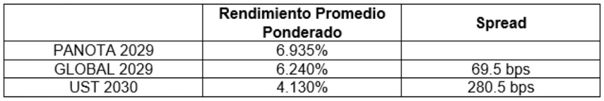 - Diferencial (spread) con bonos globales 2029: 69.5 puntos base