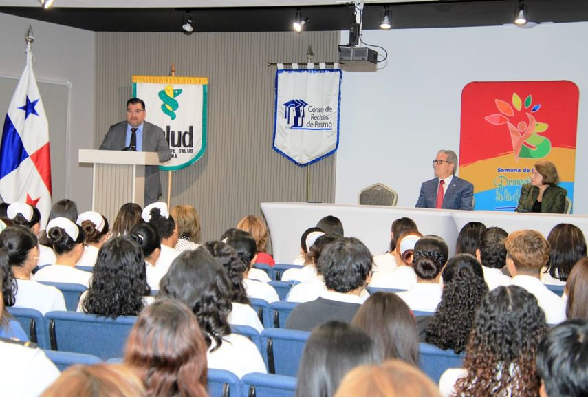 La ceremonia de apertura contó con la participación de autoridades del sector salud, rectores universitarios, docentes y estudiantes. La rectora de Columbus University, Mirna de Crespo, fue la anfitriona del evento, acompañada por representantes de la Comisión de Alto Nivel para el Fortalecimiento del Sistema Nacional Público de Salud y coordinadores de la Red Panameña de Universidades Promotoras de Salud.