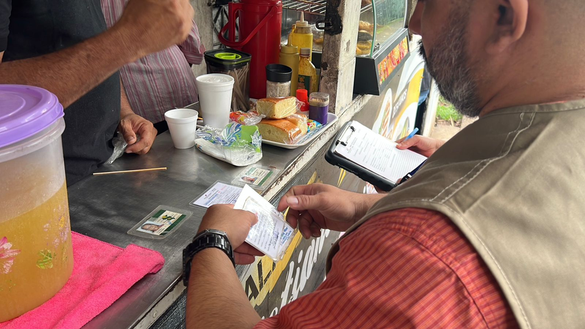 Durante el recorrido, se inspeccionaron un total de 11 puestos, de los cuales varios presentaron irregularidades sanitarias, como la falta de carné de manipulador de alimentos (blanco y verde), y problemas en la manipulación de los productos, incluyendo la ausencia de trampas de grasa y la presencia de contaminación cruzada.
