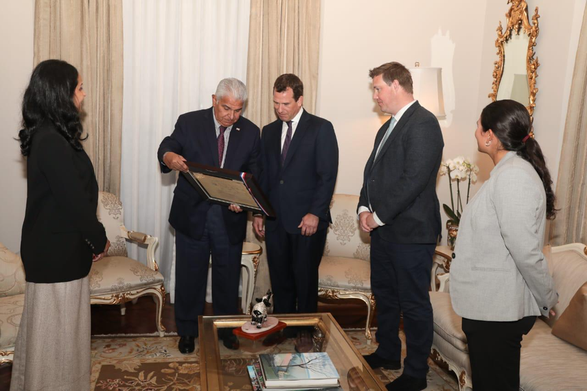 El presidente de la República, José Raúl Mulino, sostuvo un encuentro este jueves en el Palacio de las Garzas con el empresario británico Peter Phillips, sobrino del Rey Carlos III del Reino Unido, quien manifestó su admiración por el desarrollo económico y las obras de infraestructura ejecutadas en Panamá.