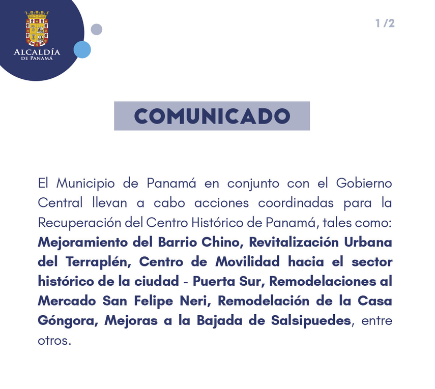 El Municipio de Panamá comunicó que iniciará acciones coordinadas con el Gobierno Central, para la Recuperación del Centro Histórico de Panamá en distintos puntos de la ciudad.