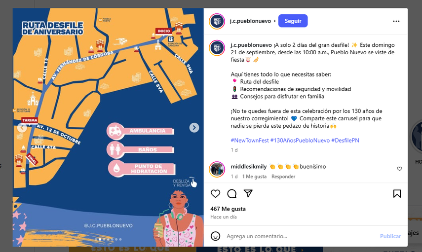 Ruta del desfile en Pueblo Nuevo