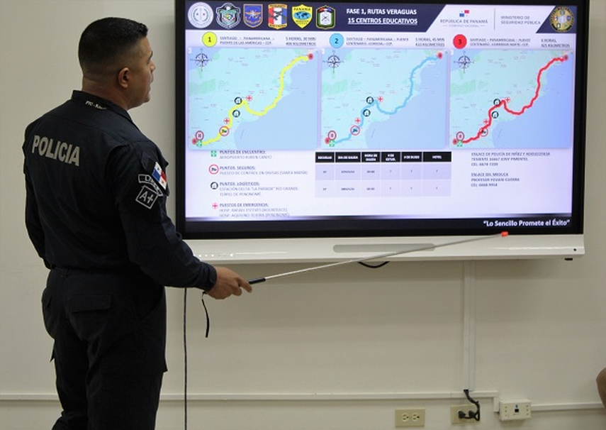La Policía Nacional presentó el esquema de ruta y el plan de desplazamiento de las escuelas de diferentes partes del país hacia los diferentes lugares del área metropolitana, así como las medidas de seguridad dentro y fuera del centro de convenciones.
