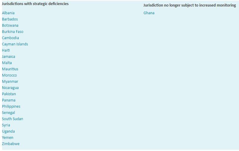 GAFI considera que estos países tienen deficiencias en sus sistemas de prevención de lavado de activos y financiación del terrorismo.