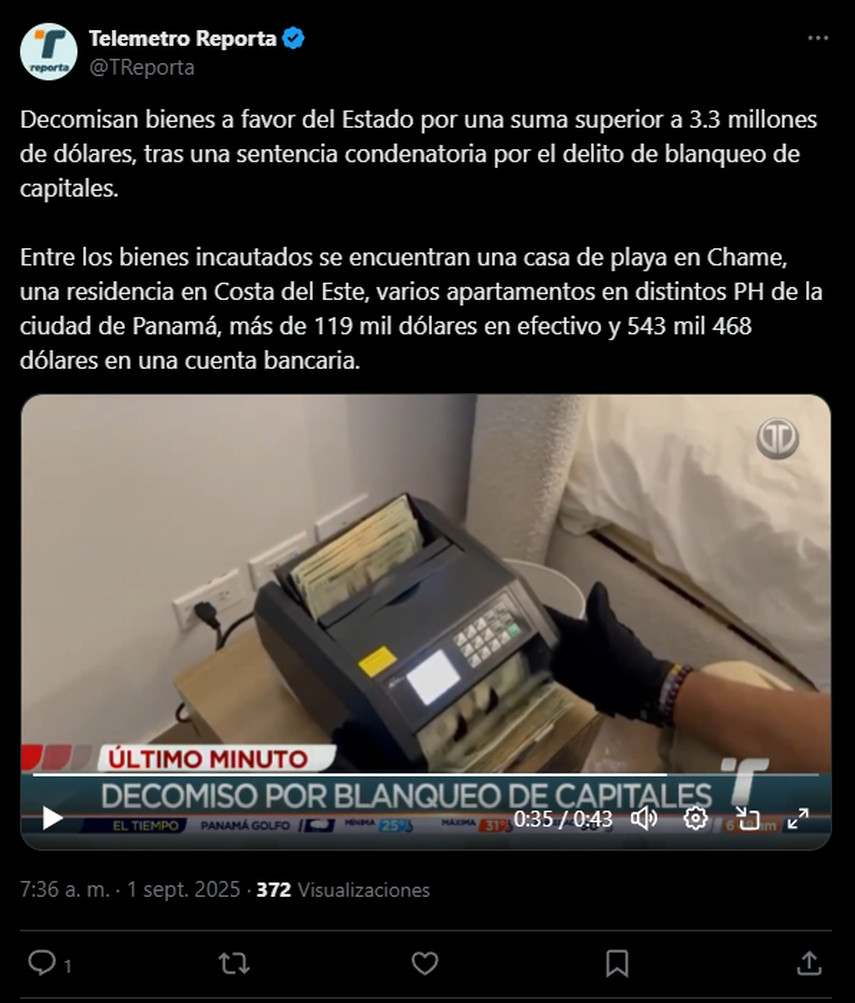 Las autoridades judiciales ordenaron el decomiso de bienes a favor del Estado por un valor superior a 3.3 millones de dólares, tras una sentencia condenatoria por el delito de blanqueo de capitales.
